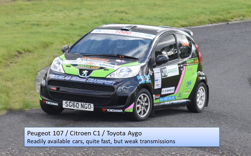 Any 1000cc, non-turbo, 2 wheel drive car can be used in the Championship. Popular choices are:
