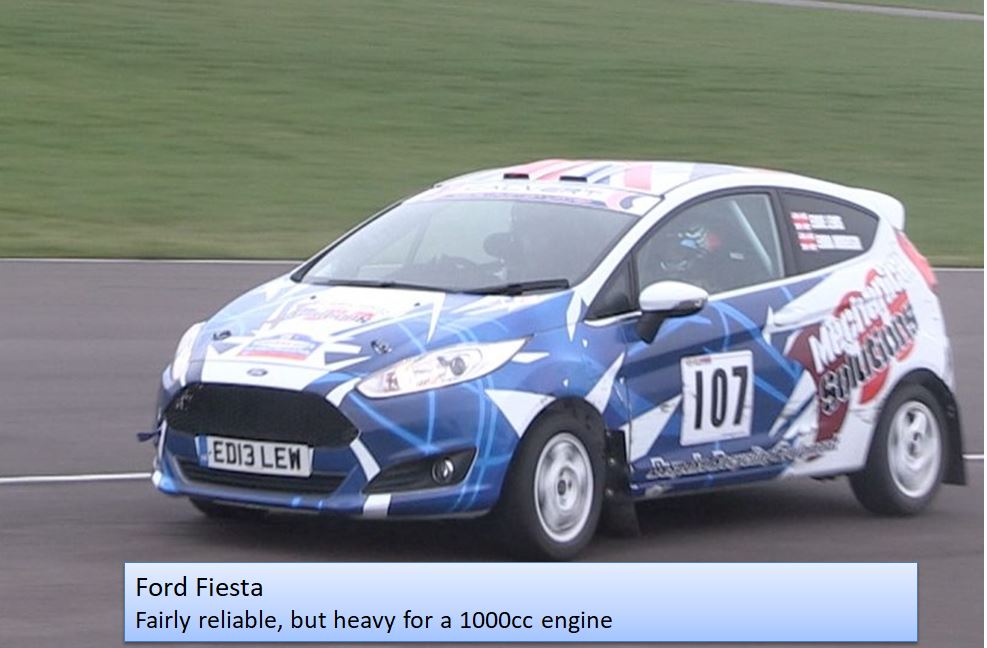 Any 1000cc, non-turbo, 2 wheel drive car can be used in the Championship. Popular choices are: